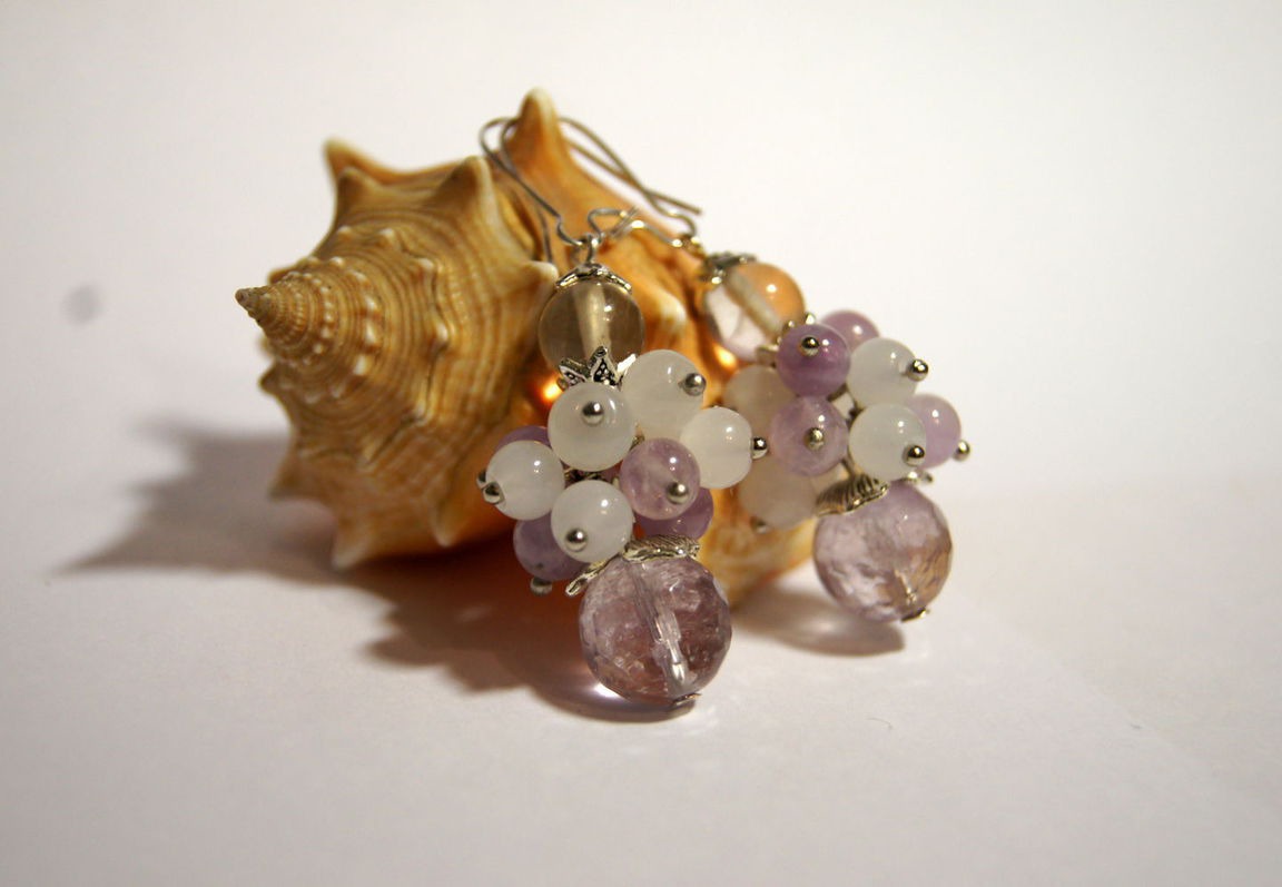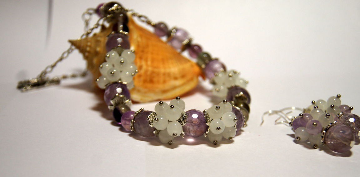 комплект украшений, колье ручной работы, серьги ручной работы, украшение из камней, колье из аметиста