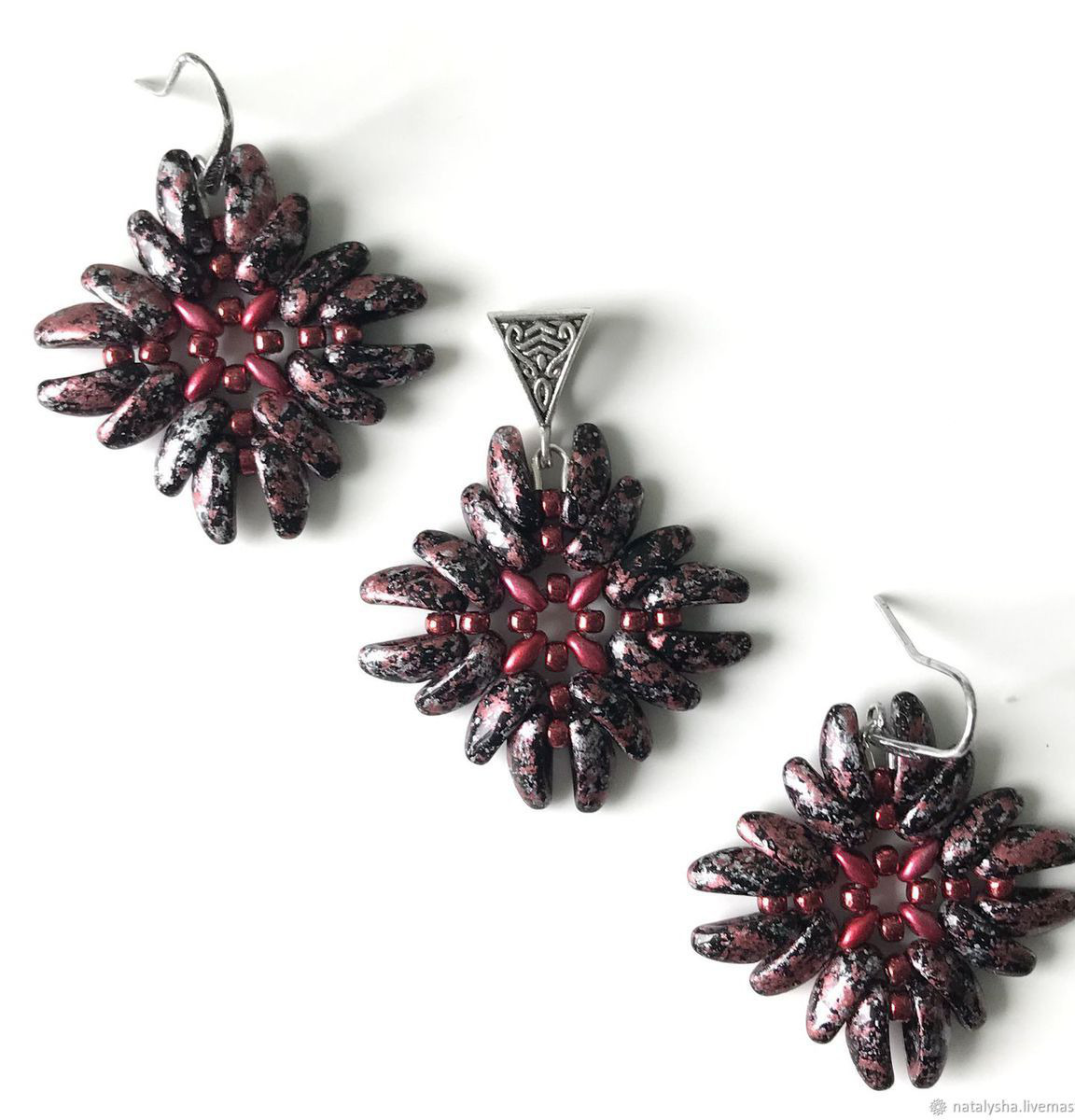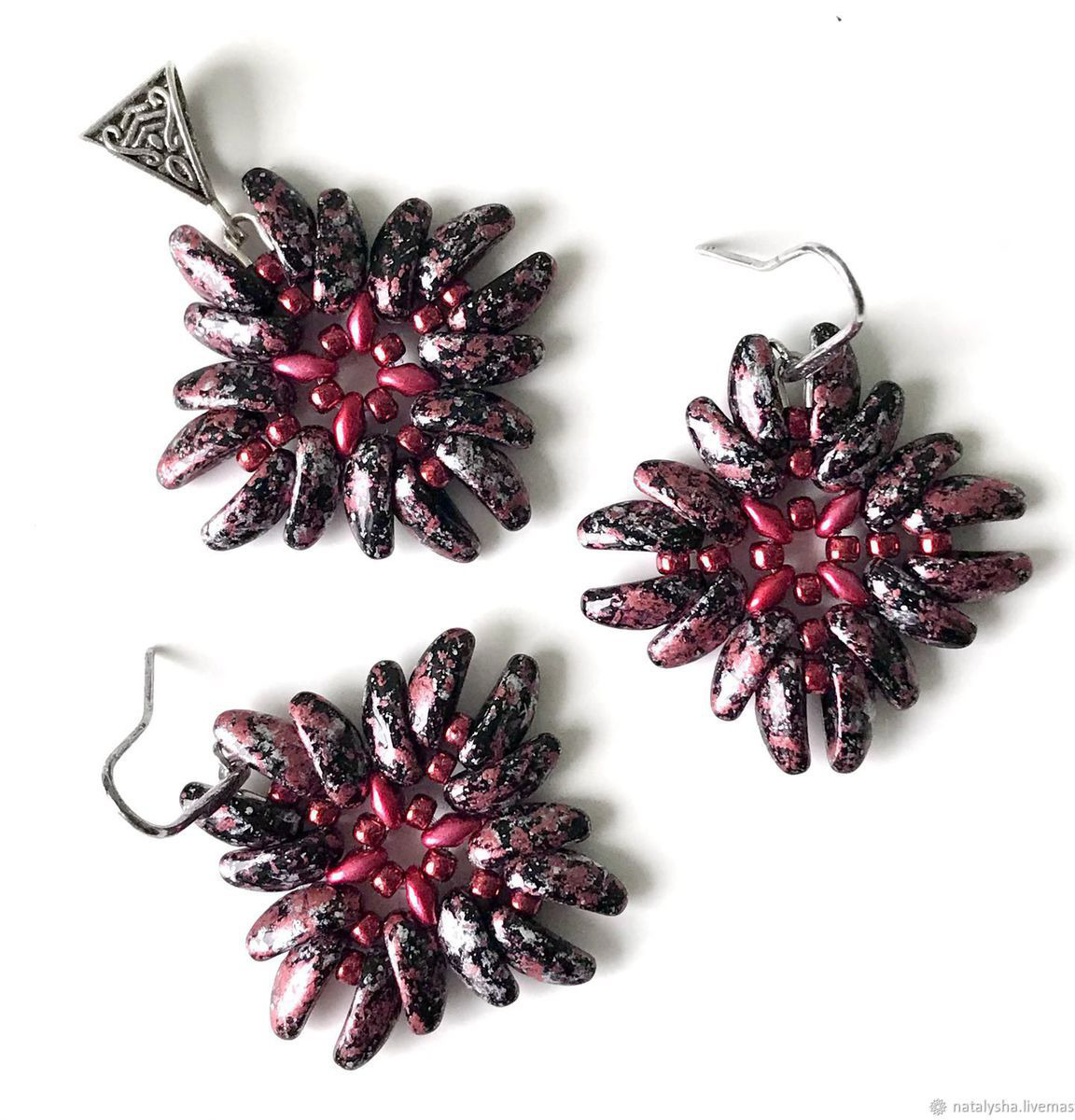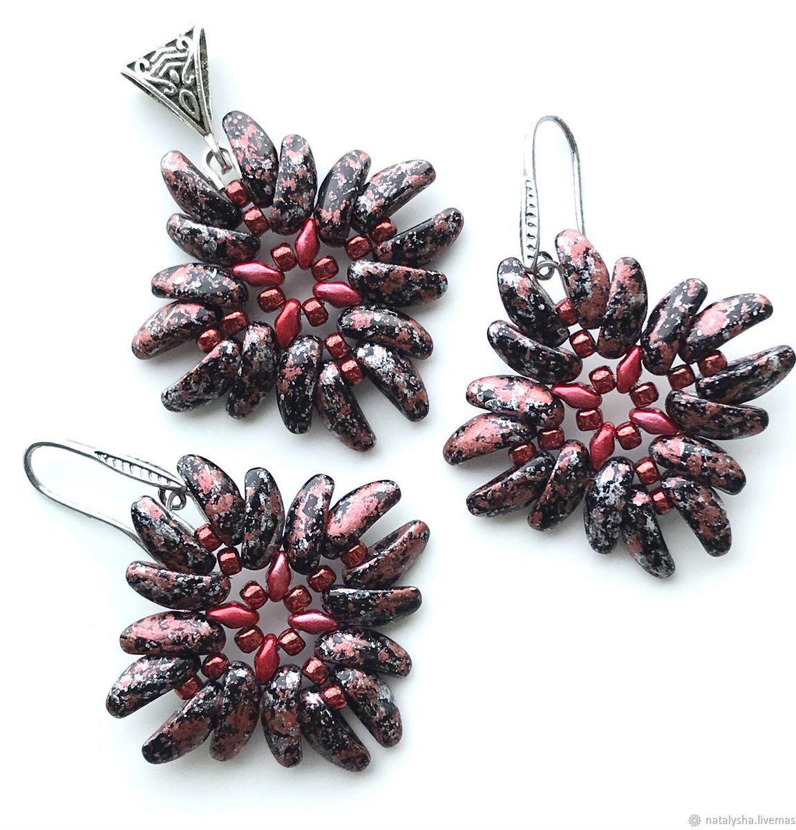 Серьги и кулон получились достаточно крупными, объёмными. Выглядят очень эффектно!