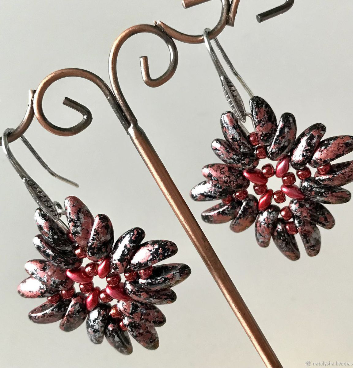 Элементы комплекта сплетены на японской леске из чешских бусин и японского бисера Toho. Фурнитура металлическая под античное серебро ("Zlatka", Китай).