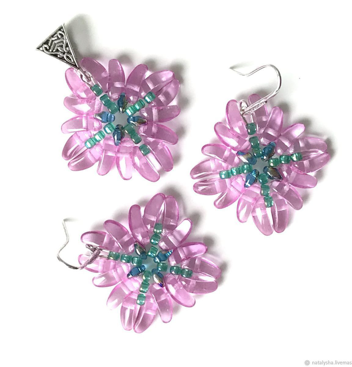 Серьги и кулон получились достаточно крупными, объёмными. Выглядят очень эффектно!