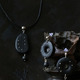 D колец 3 см., длина серег 5 см., кулон 2,5х6 см., длина шнура 43-60 см.