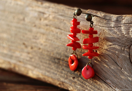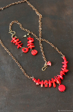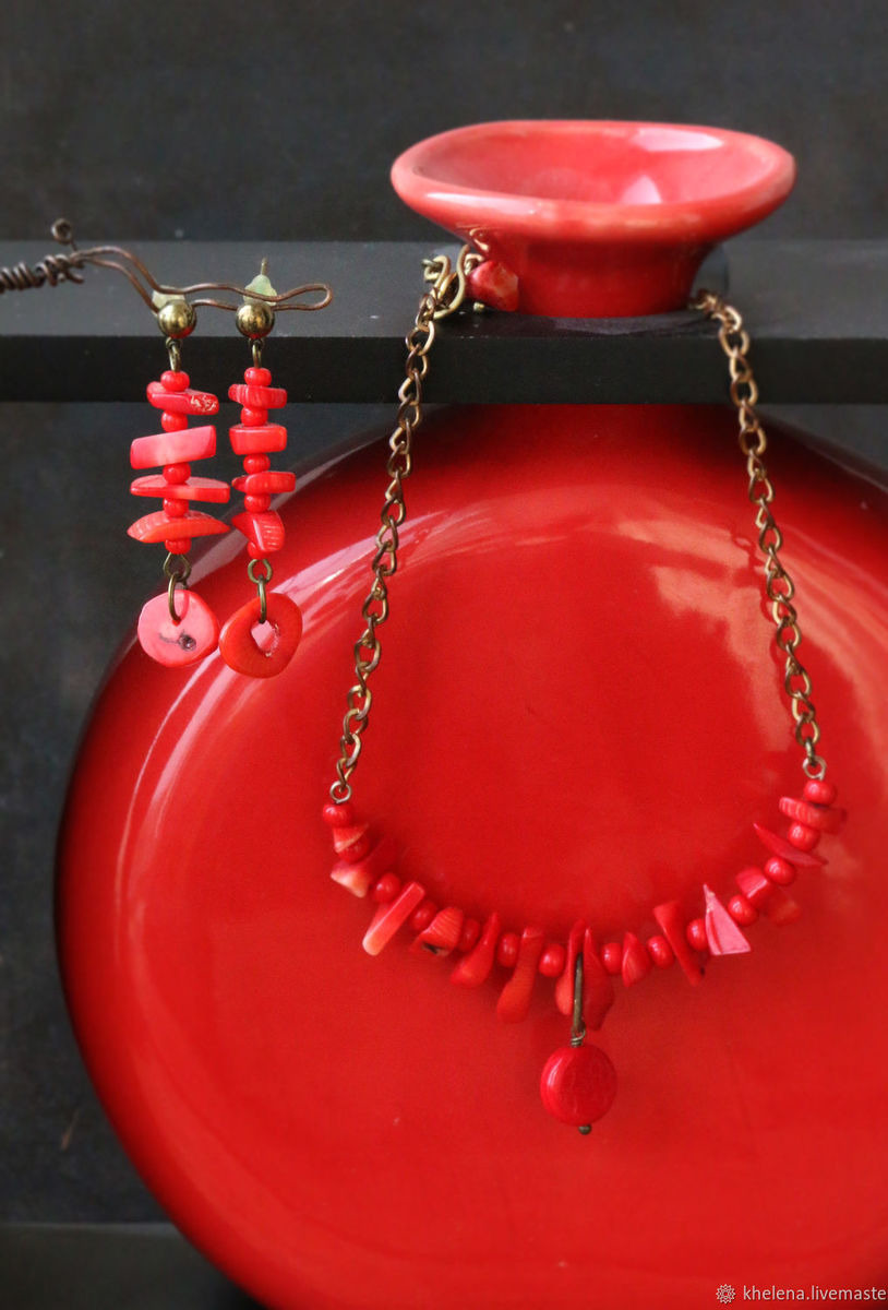 коралловый, минимализм, яркие украшения, алые паруса, колье гривна, японский стиль, комплект из коралла, комплект бохо купить, натуральные украшения, красное солнце