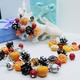 Это мандарины, заснеженные шишки, ёлочные игрушки, снежинки и выпечка.