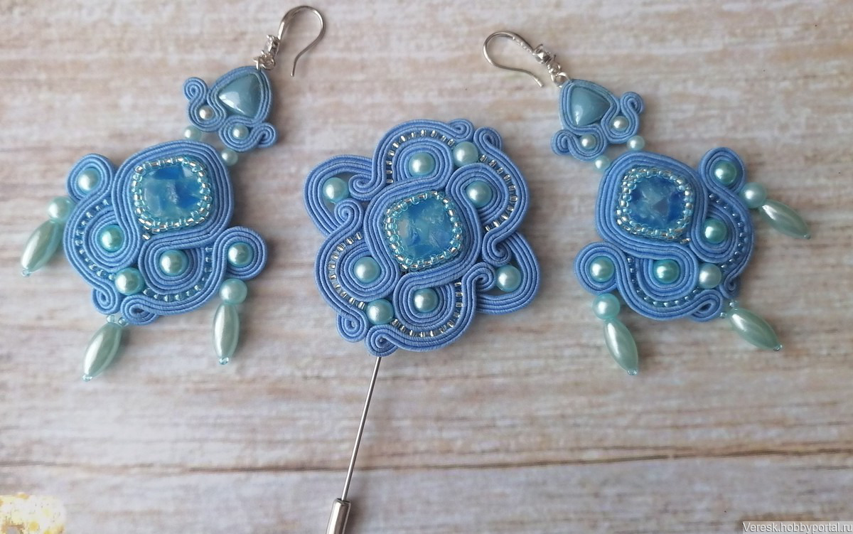 сутажные серьги, сутажные украшения, сутажная брошь, сутажный комплект