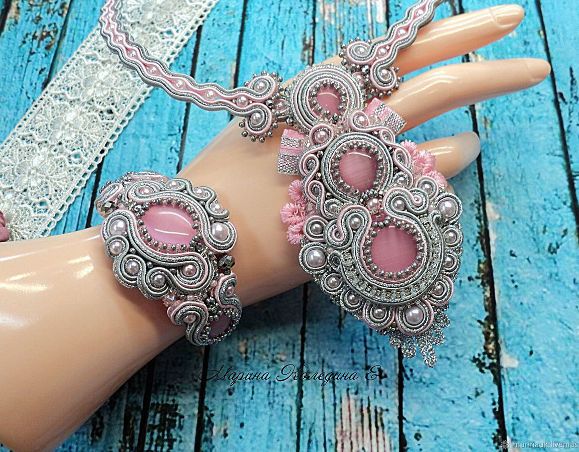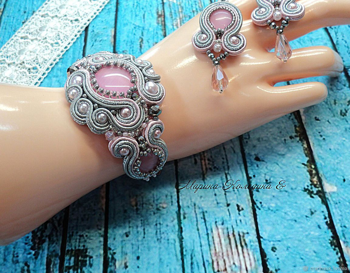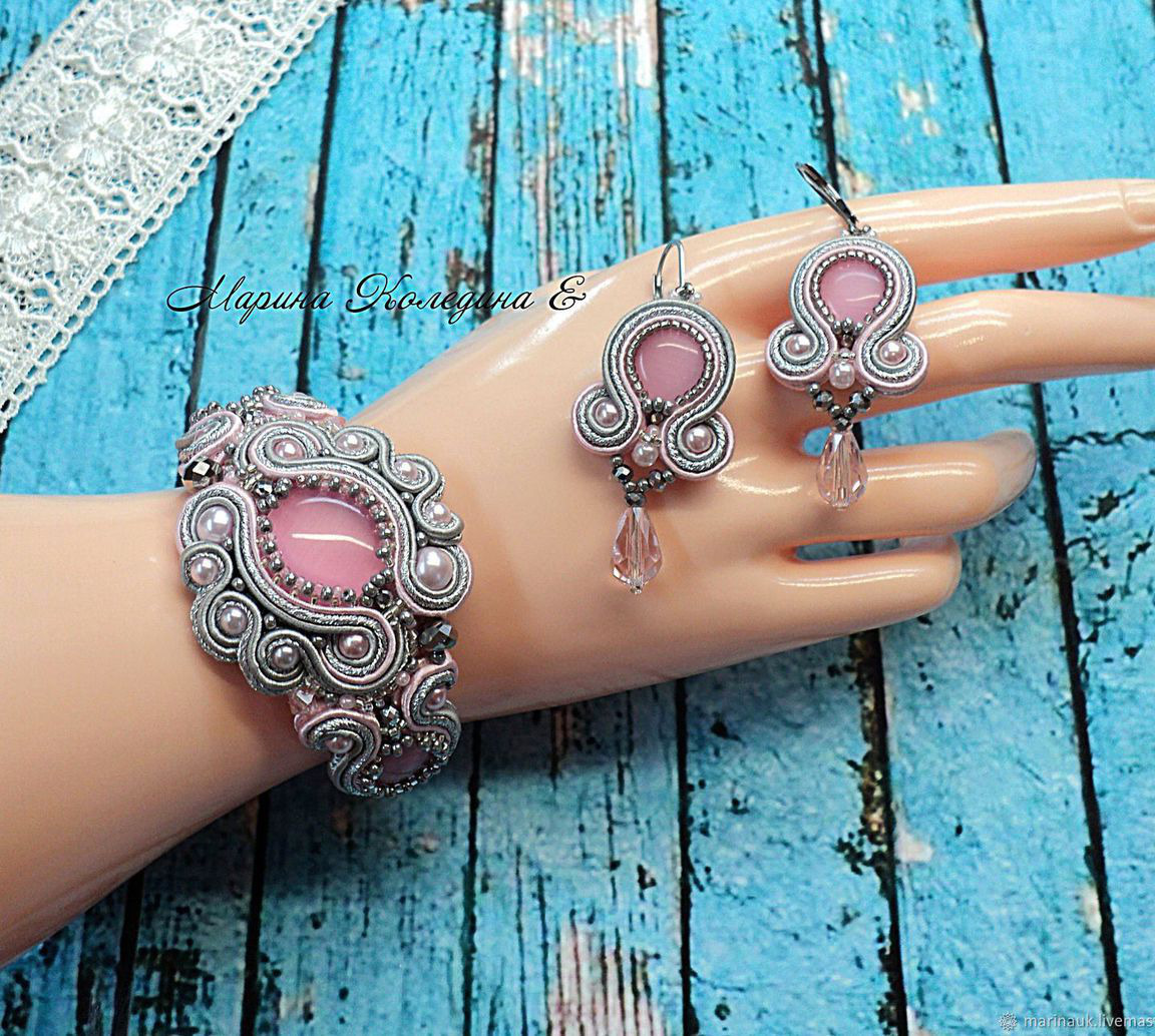 серый, украшение, авторская работа, ручная работа, розовый, handmade, сутажный, серебристый, сутаж, jewelry, buy, soutache, украшениеручнойработы, jewelryhandmade, кольесерьгисутажный браслет, сутажное кольесутажные серьги