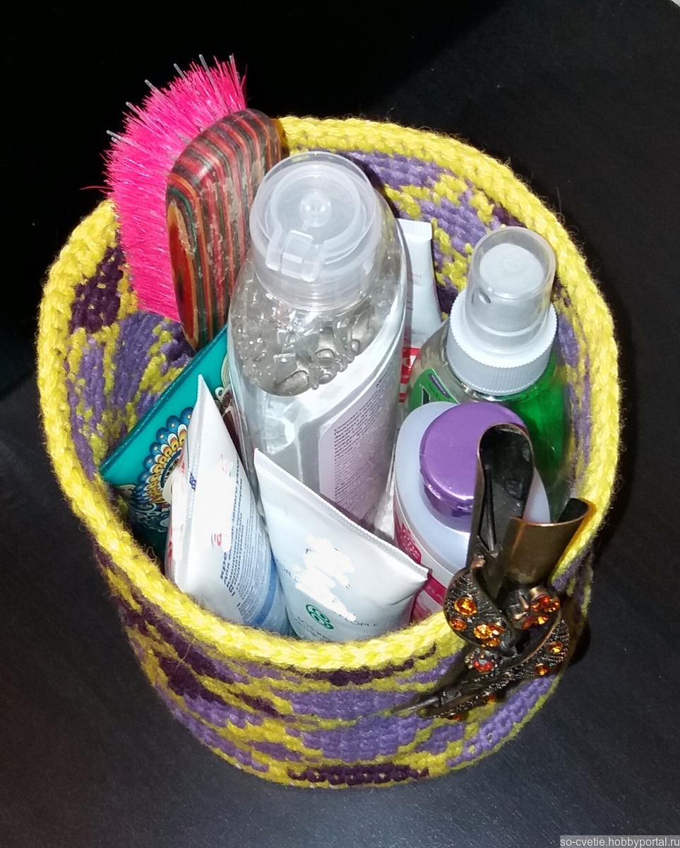 для дома и интерьера, коробочка ручной работы, жаккард крючком, тапестри, многоцветное вязание, для хранения