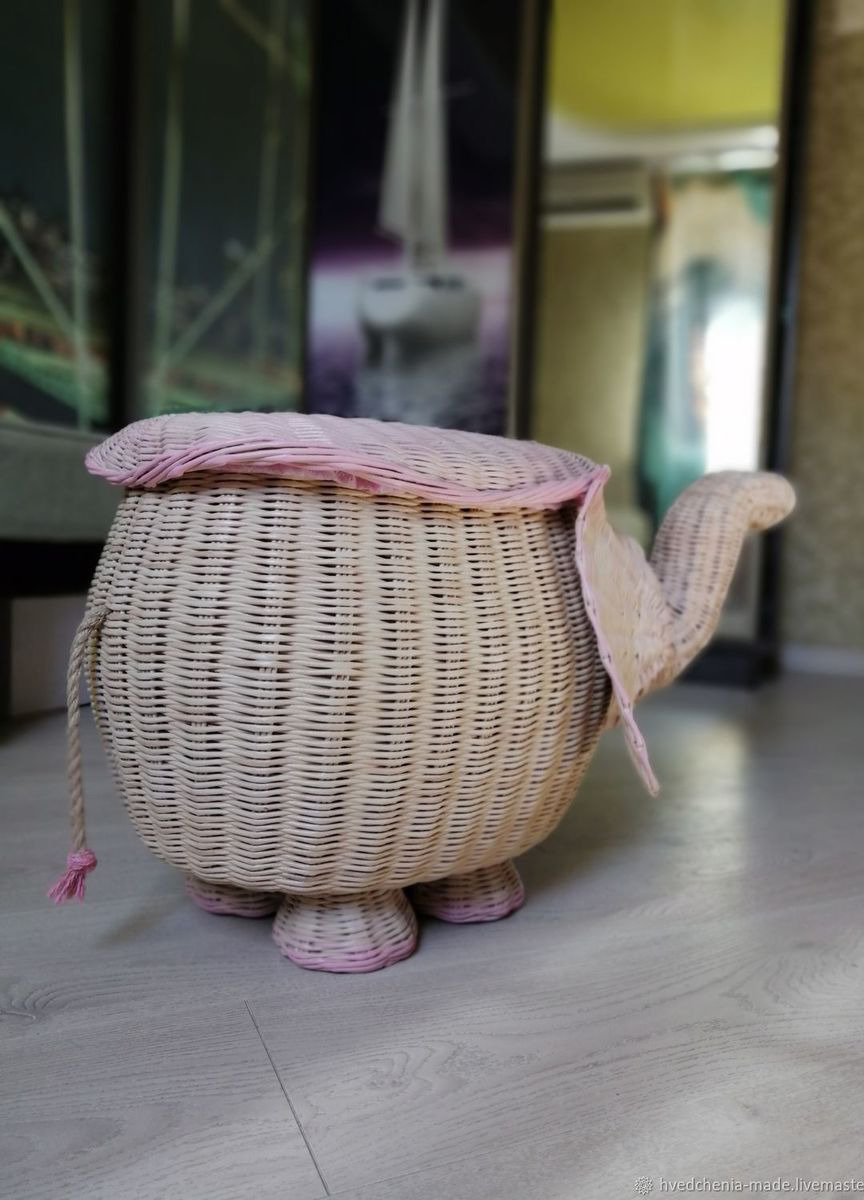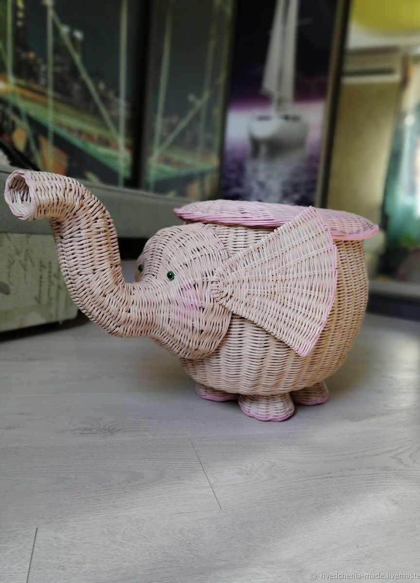 подарок, слон, плетение, плетеные корзины, слоник игрушка, слоник в подарок, слоник ручной работы, хранение вещей, короб для игрушек, хранение игрушек, плетеные изделия, плетеные короба