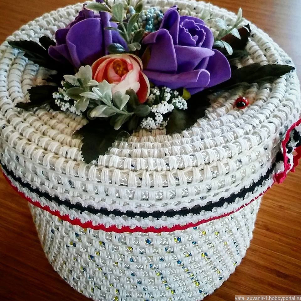 корзинка выполнена крючком, плотная и устойчивая, отлично держит форму