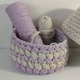 Корзина бежево- лавандового цвета связана из трикотажной пряжи maccaroni и ribbon. Корзина твердо держит форму и не меняет форму. Корзина подойдет для хранения мелких вещей, косметических средств, а так же мелких игрушек ребенка.