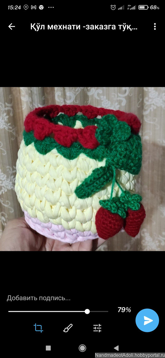 Корзиночка из х/б трикотажной пряжи , подходит для хранения разных расчесок .ТД, или карандашей и других принадлежностей для творчества и рукоделия