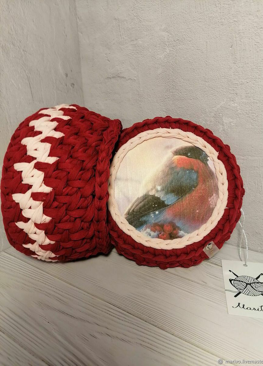 И поможет в этом вязаная корзинка/шкатулка с крышечкой "Снегирь".