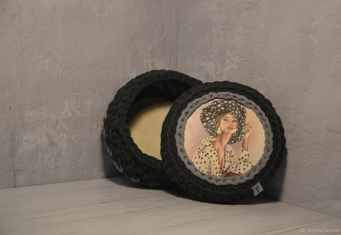 И поможет в этом вязаная корзинка/шкатулка с крышечкой "Девушка в шляпе".
