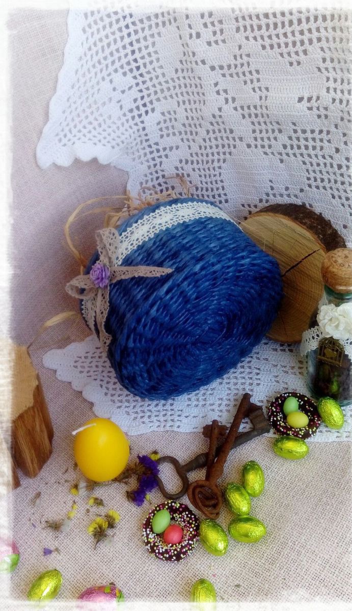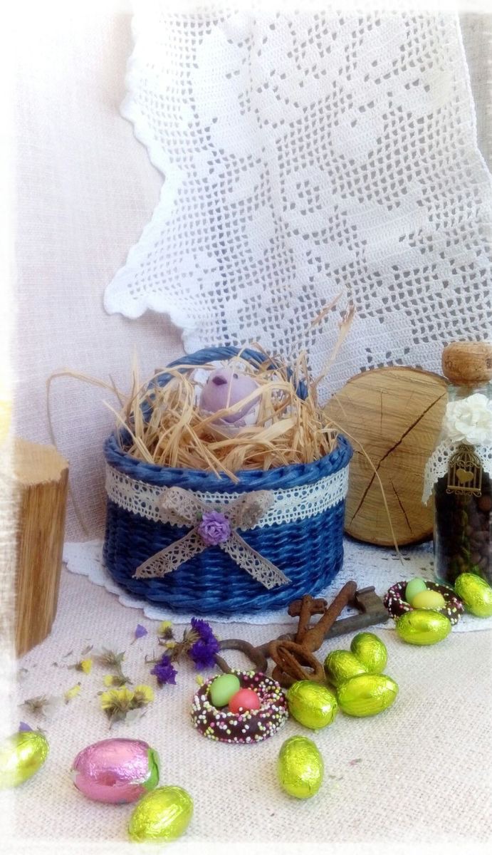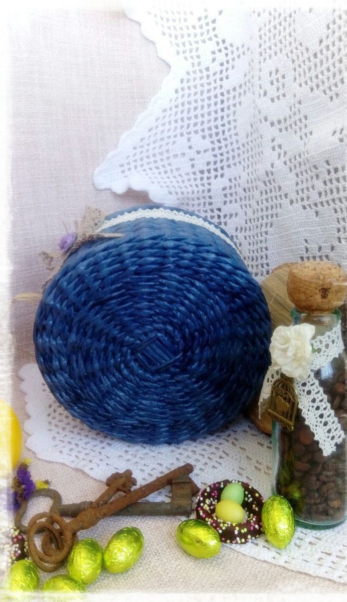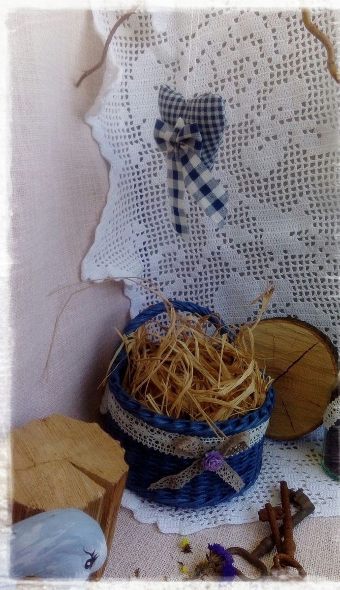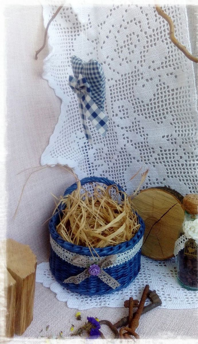 подарок на любой случай, темно-синий, для кухни, корзинка для мелочей, для фотосессий, кружево для отделки, уютный дом, прованс, корзина для хранения, корзина плетеная, корзинка плетеная, для гостиной, плетение из бумаги, плетеная корзина, плетеная корзинка, корзинка с ручкой, синие дали, для фруктов, для печенья, маленькая корзинка
