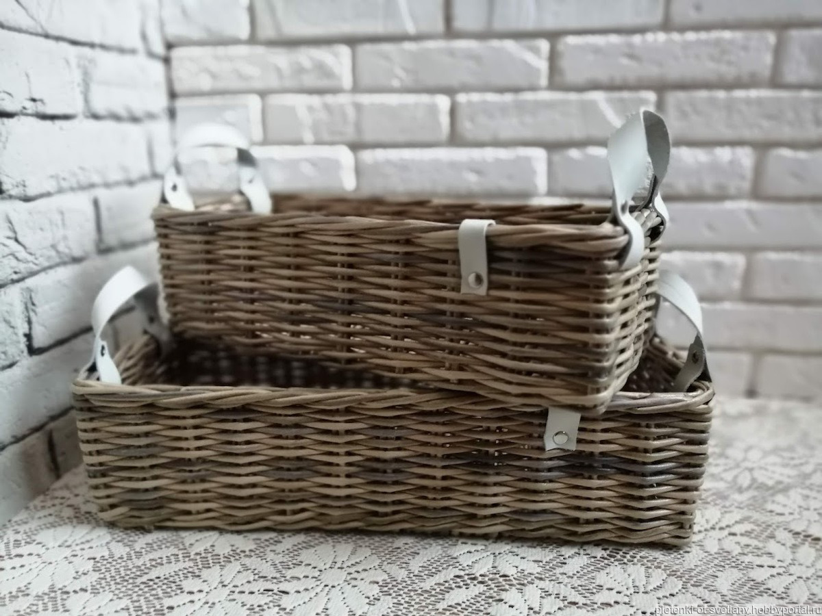Легкие, прочные корзины снабжены ручками из натуральной кожи для удобства их переноса. Возможно изготовление на заказ в другом цвете.