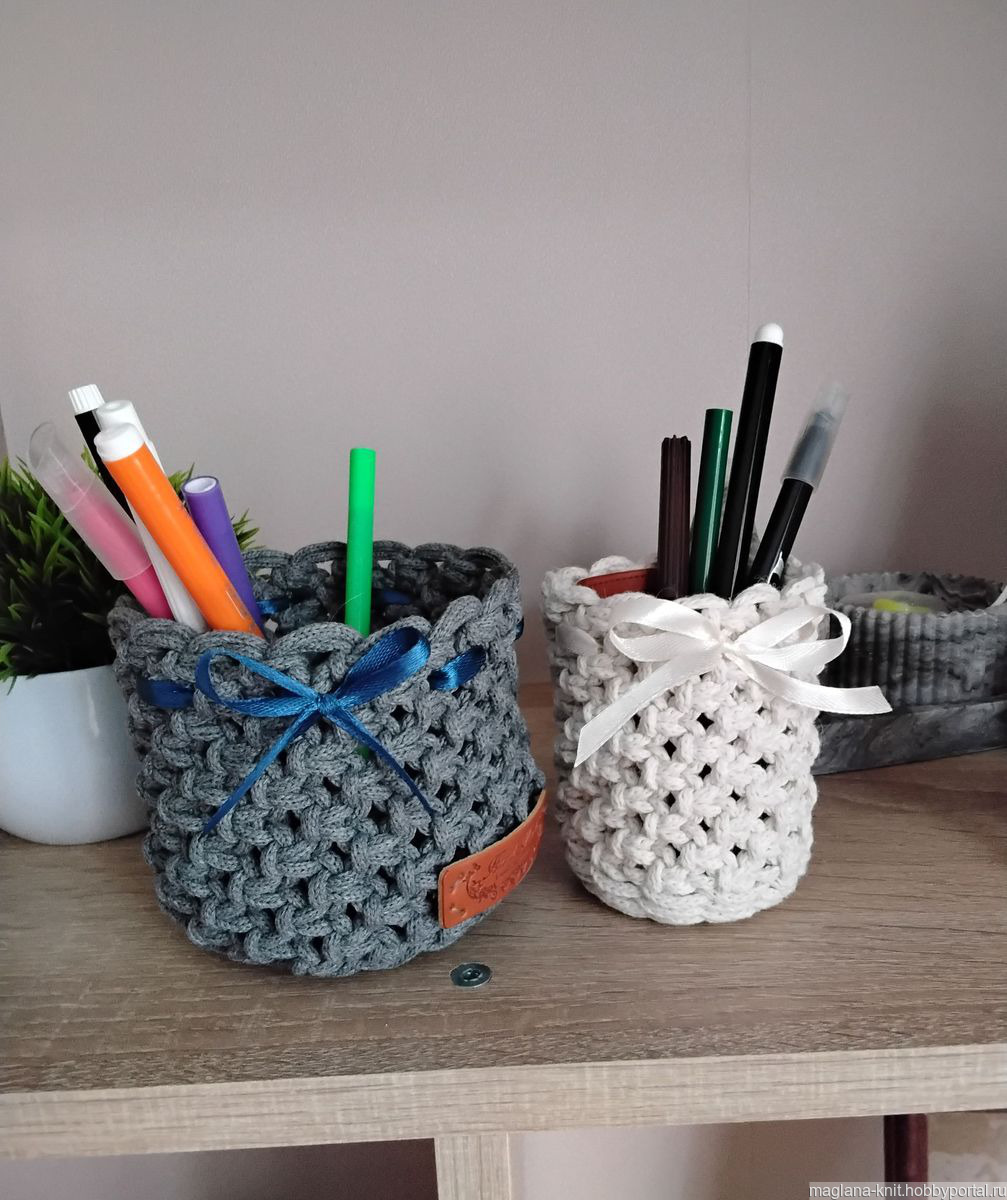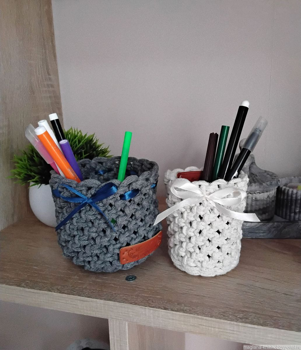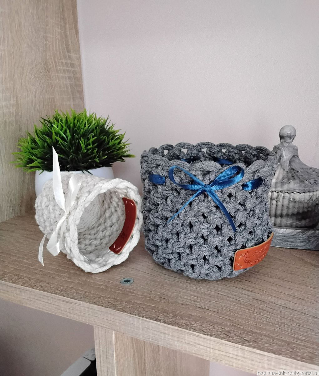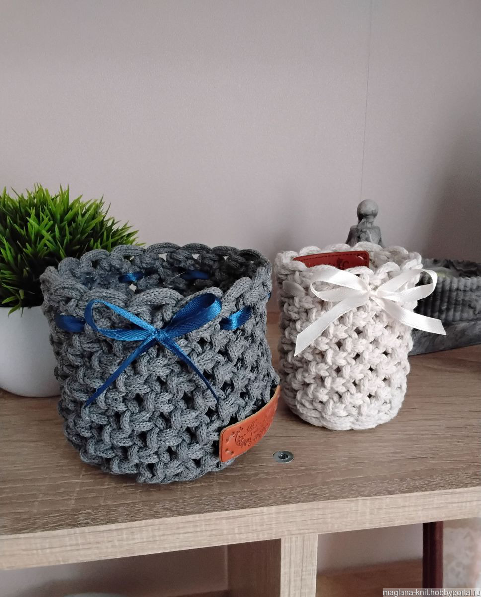 Предлагаю вашему вниманию комплект из двух декоративных плетеных ваз, выполненных в технике макраме из хлопкового шнура.
