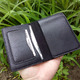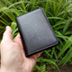 Полностью ручная работа. Изготовлено из кожи Краст черного цвета. Прошито ручным седельным швом вощеной нитью. Размер портмоне в закрытом виде 13см высота. 9,5 см ширина.