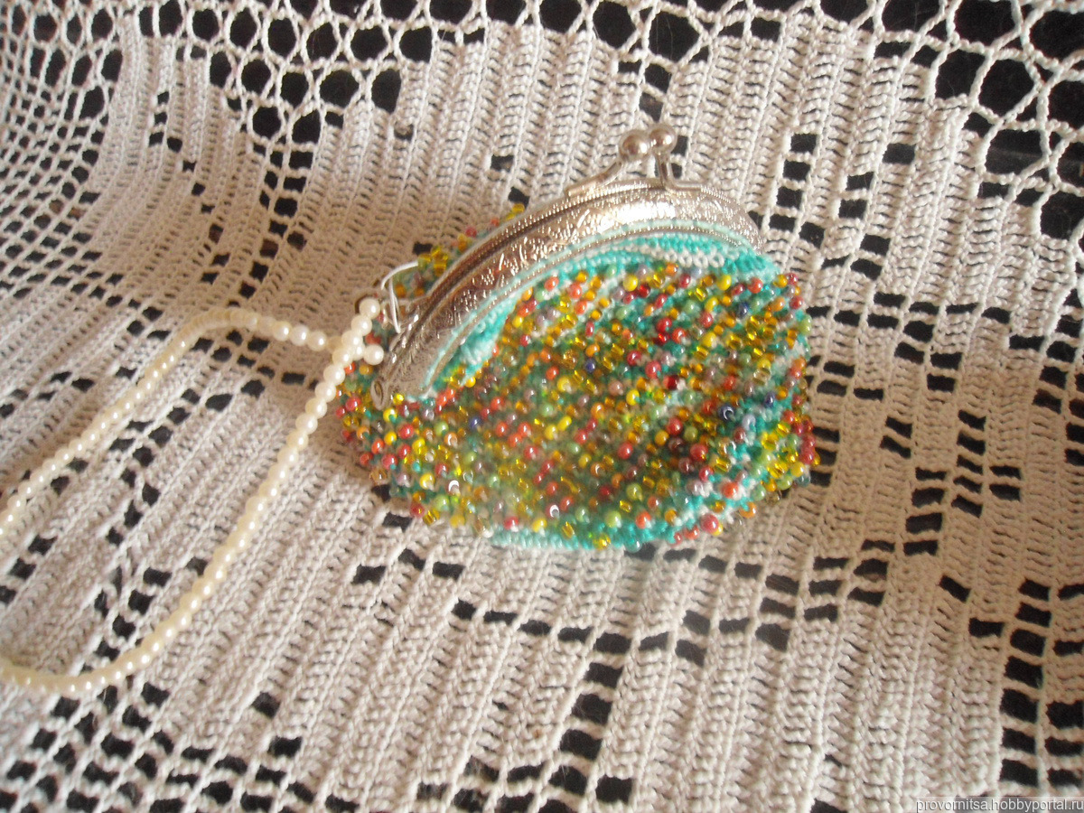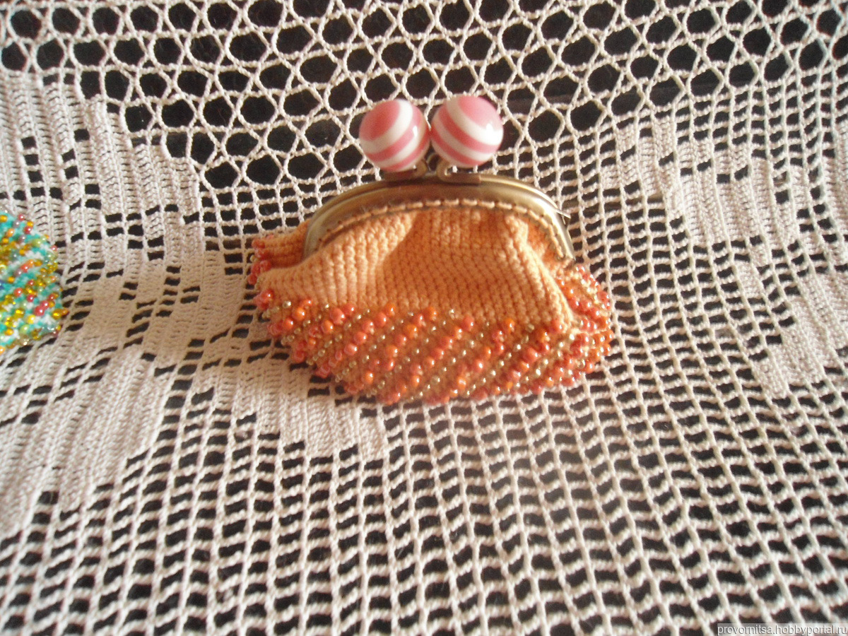 Кошелек Пухлячок связан из принтового хлопка с бисером и бусинами.Стильный аксессуар,тактильный ,приятный на ощупь.