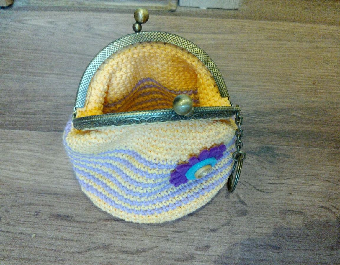 Милый маленький кошелёк для мелочи будет для вас стильным аксессуаром. Связан крючком из хлопковой пряжи. Узор настолько мелкий что ничего из него не выпадет. Защелка крепкая. Есть ещё колечко для ключей, можно прицепить кошелёк к сумке или к поясу.