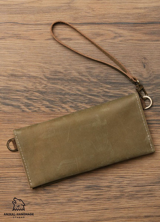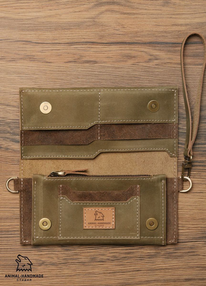 Кошелёк из натуральной кожи ручной работы 2 отделения для купюр 6 отделений под карточки Отделение под мелочь, на молнии Ручка петля Размер кошелька 9*19 см