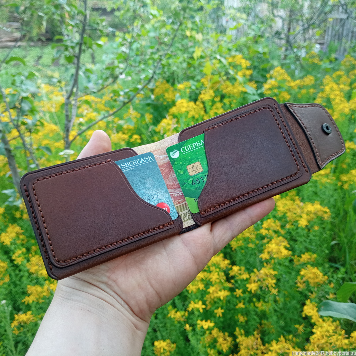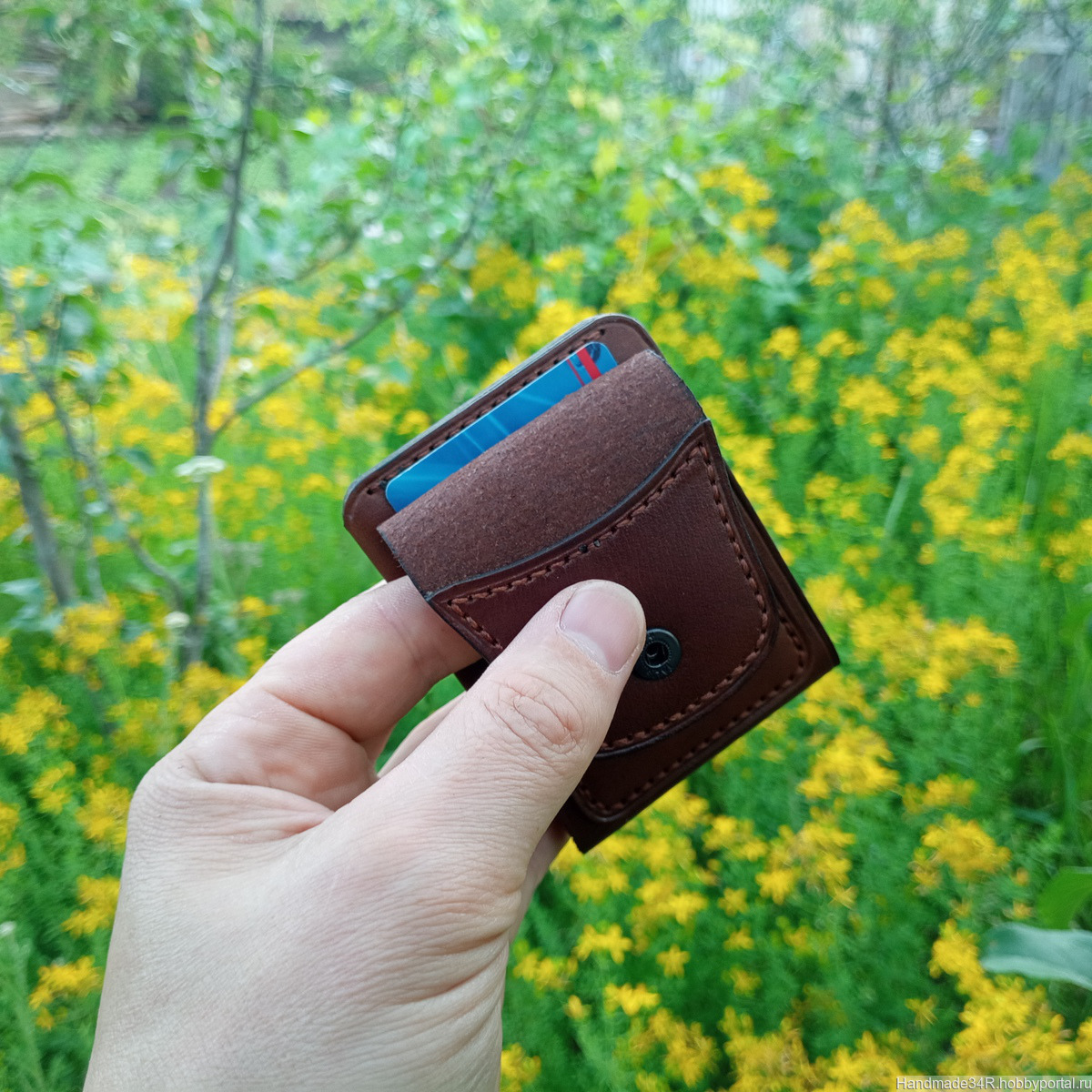 Компактный кожаный кошелек. Отделение для купюр и 4 кармана для карт.