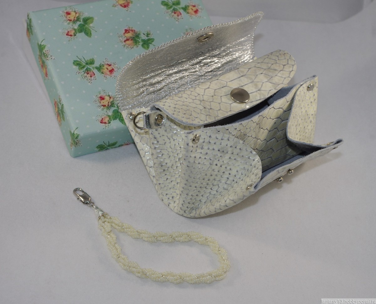 К кошельку есть съемная ручка в виде петли , из бисера в цвет кошелька. Сам кошелек отделан по краю клапана японским бисером.