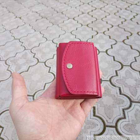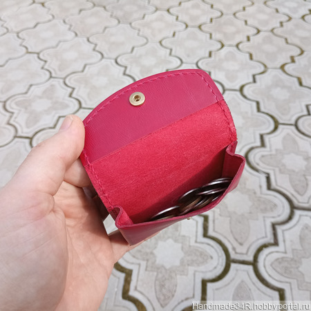 Сшит из натуральной кожи КРС. Прошит вручную, седельным швом, без применения швейной машинки.