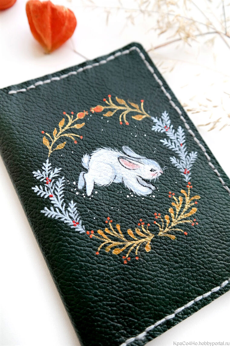 Обложка на паспорт из натуральной кожи с ручной росписью