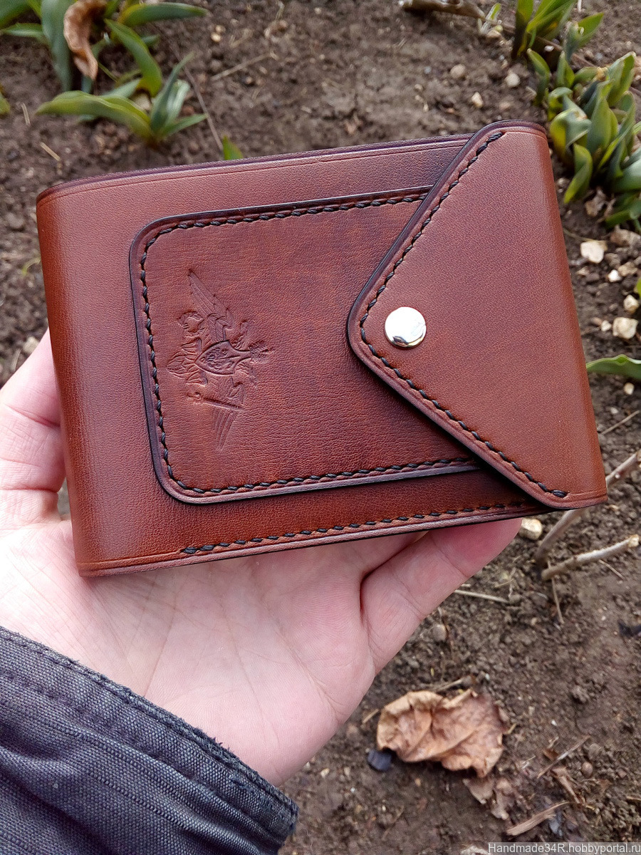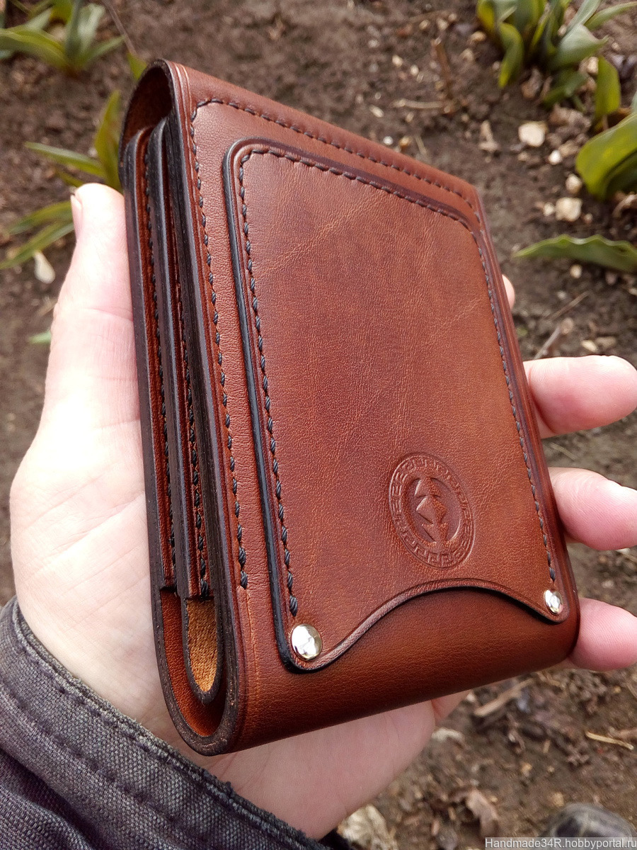 Изготавливается полностью ручным способом, из натуральной высококачественной кожи! Все детали портмоне тщательно склеиваются и прошиваются ручным, седельным швом, прочной, вощёной нитью!