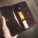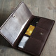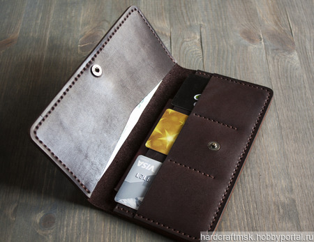 Строгий и лаконичный бумажник, два раздела для купюр, три раздела для карт вмещающих до 9 карт. Помещается паспорт. Размер 20х10,5 см в закрытом виде