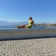Вязала костюм для своей приятельницы.Очень красиво получилось,яркие,сочные цвета.Окраска прочная,нитки не линяют(что очень важно в разноцветных изделиях).Она носит его и в городе и в отпуске(как видно на фото).