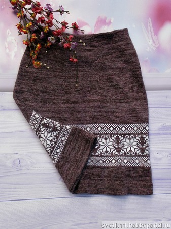 костюм связан из полушерсти и ниточки мохера теплый,на свитере и юбке вывязан жаккард что придает изделию элегантность,полностью машинная вязка