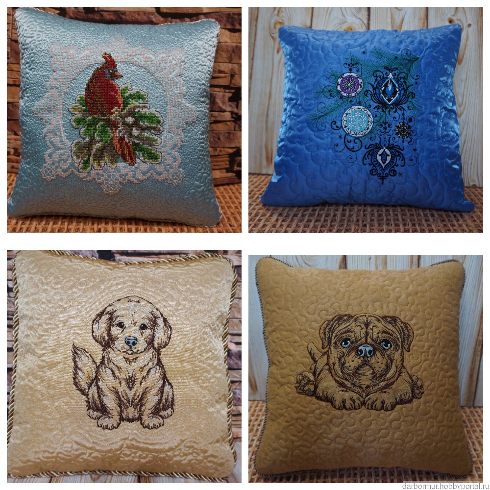 декоративные подушки-изысканные подарки!наволочки изготовлены из портьерной ткани ,украшены машинной вышивкой и машинной стежкой.внутри -подушка ,набита холлофайбером.
