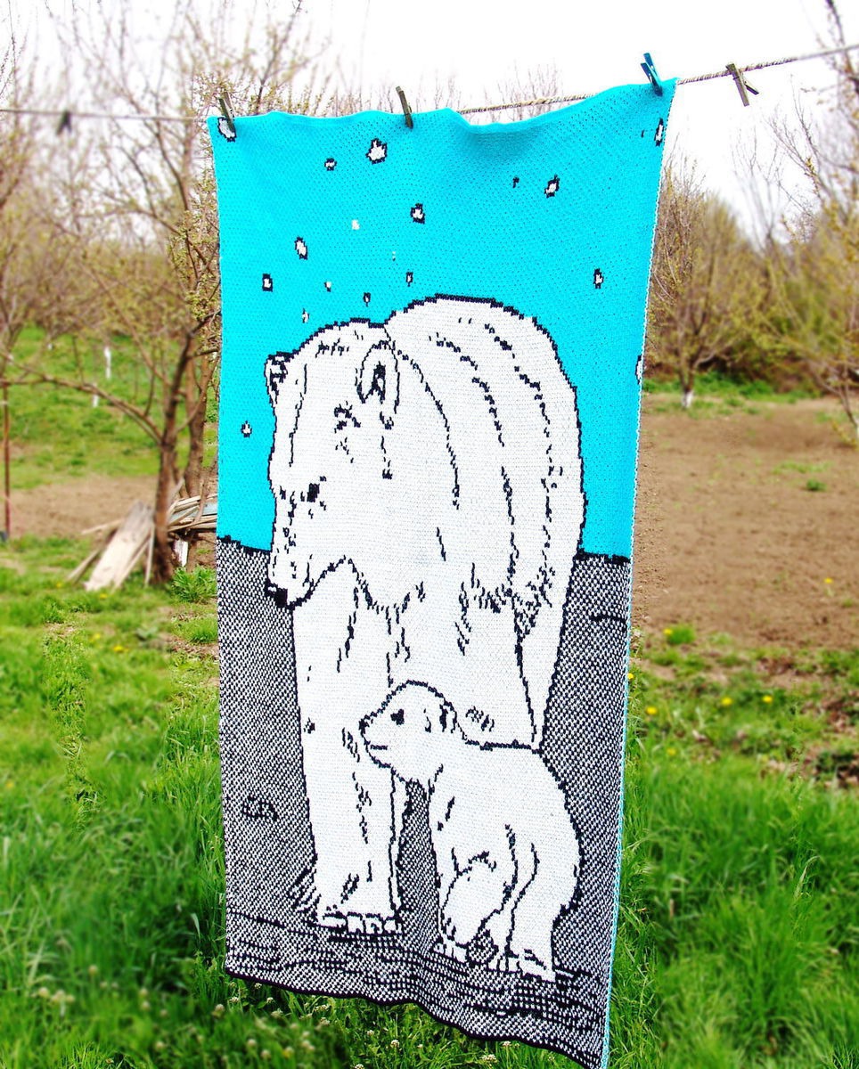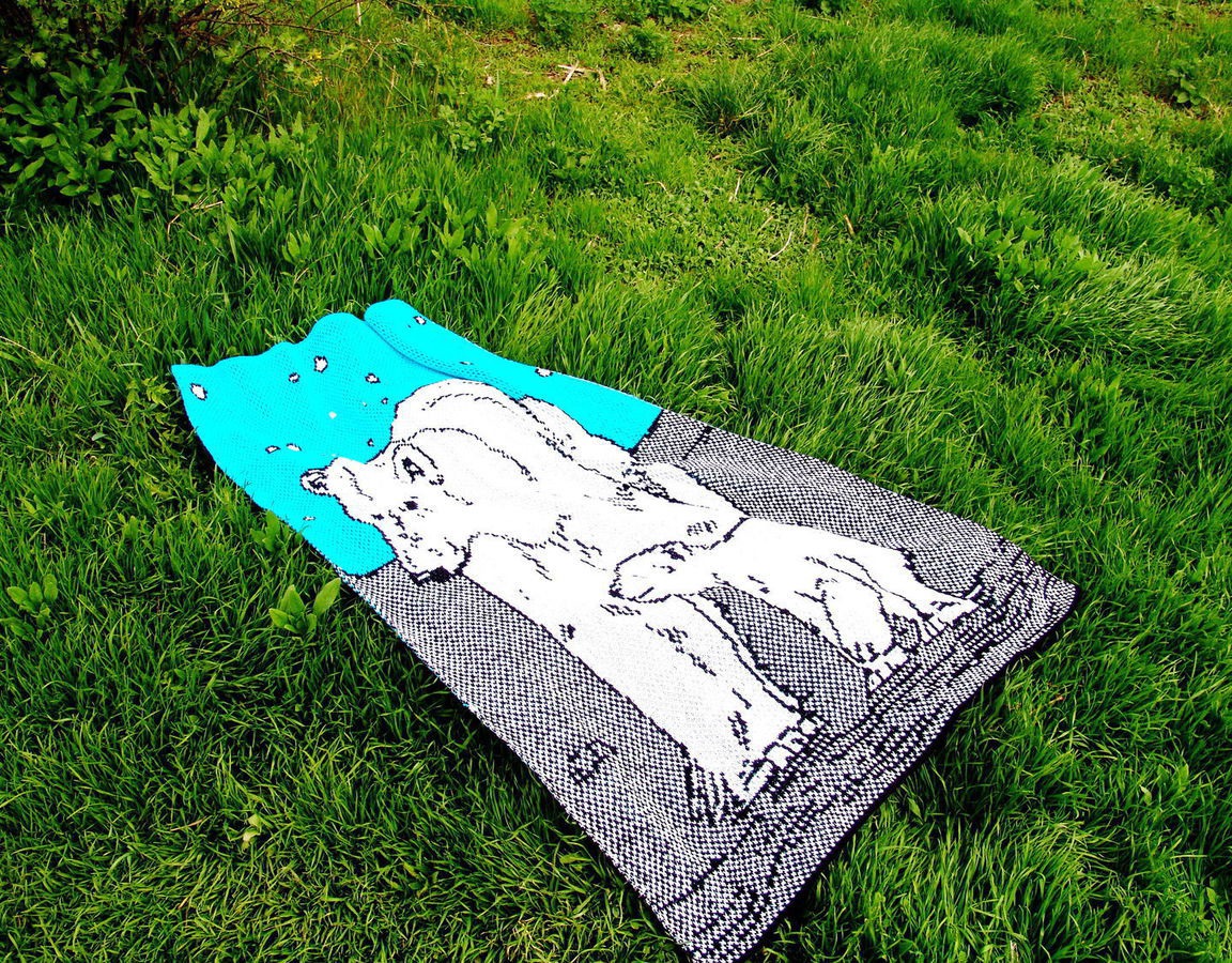 бирюзовый, белый, подарок, плед, комбинированный, вязаный, детский, север, ребенку, мишки, северные, белые медведи