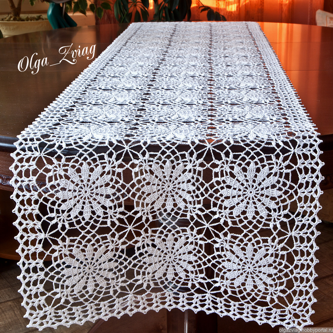 дорожка на стол, скатерть крючком, дорожка вязаная, дорожка ажурная, дорожка крючком, скатерть на заказ, дорожка льняная, дорожка на комод, вязаная дорожка, скатерть на прямоугольный стол, дорожка из мотивов, tablecloth
