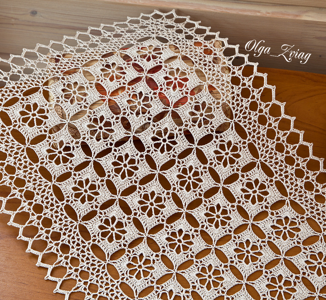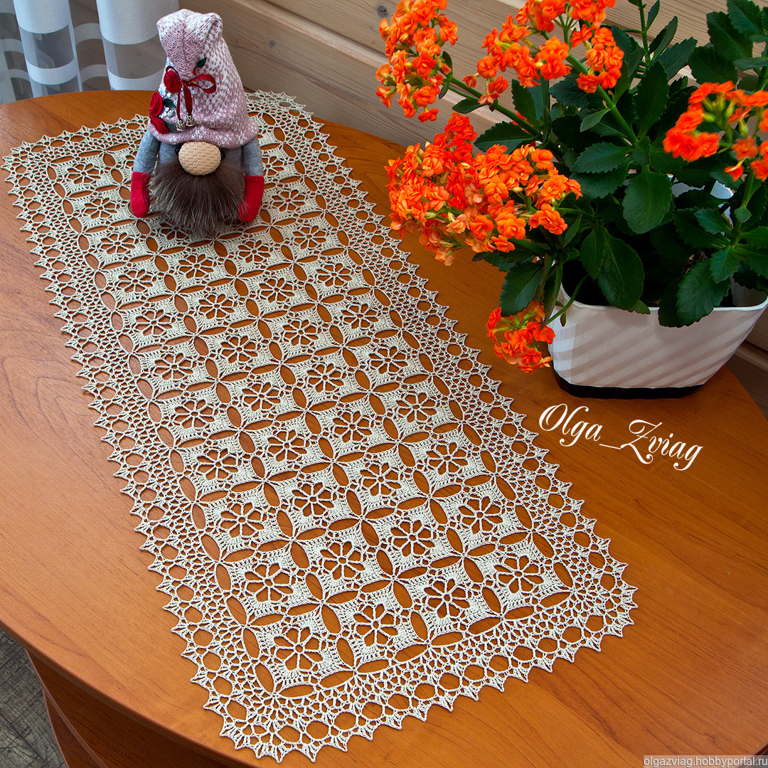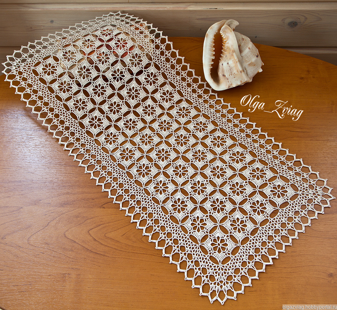 Дорожка из мотивов связана методом безотрывного вязания, одной ниточкой от начала до конца.