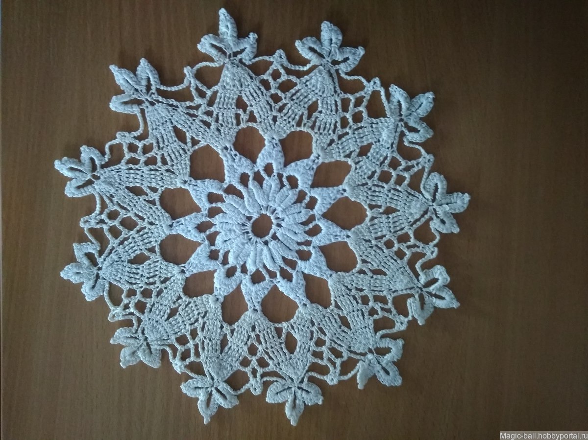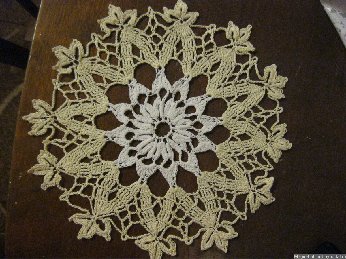 Круглая салфетка. Нитки Лилия белый и YarnArt violet шампань.