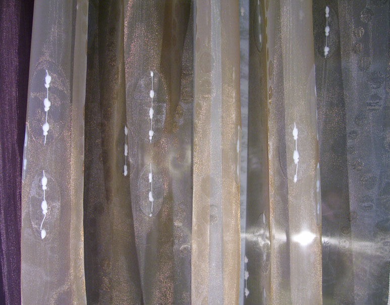Красивый комплект штор с бахромой для гостиной и спальни коричневого цвета.