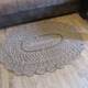 Овальный ковёр Связан крючком из джутового шпагата. Экологичен и натурален будет уместен в любом интерьере. Отлично смотрится в экостиле. Ковёр приятный на ощупь.не колючий слегка ворсистый (шпагат не шлифованный) Не желательно использование в ванных комнатах и банях так как джут быстро впитывает влагу и медленно сохнет. Принимаю заказы на ковры из джута цвет натуральный ,а так же из полиэфирного шнура и акриловой пряжи любого цвета.
