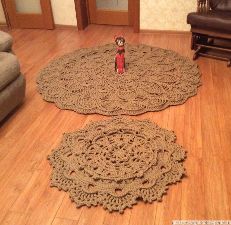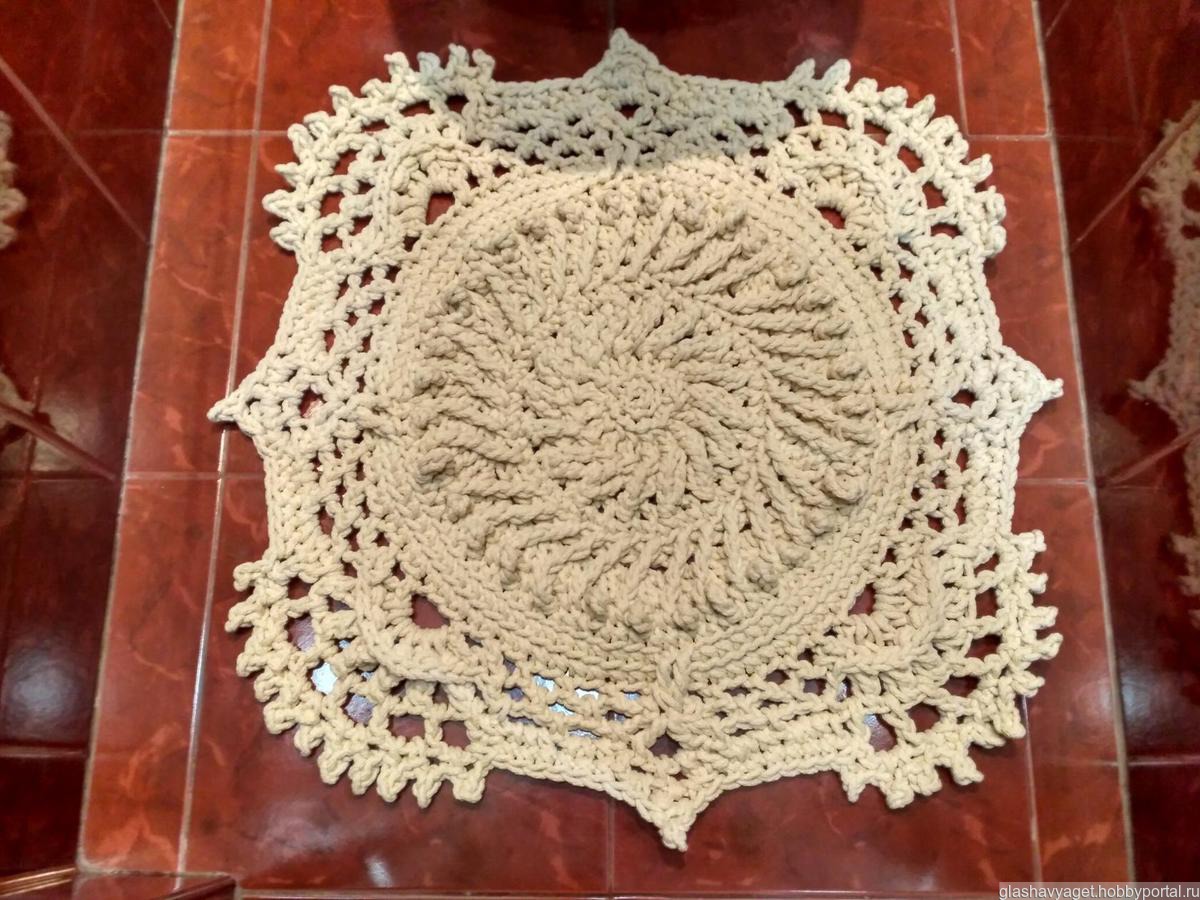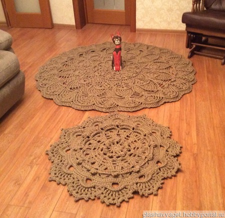 свяжу по заказу.размер зависит от толщины шнура, можно в два сложения, возможные цвета на сегодняшний день- желтый, красный, синий, болотный.Все ковры для образца, свяжу любой из них.Цена на каждый своя, от 600 р до 8000р.