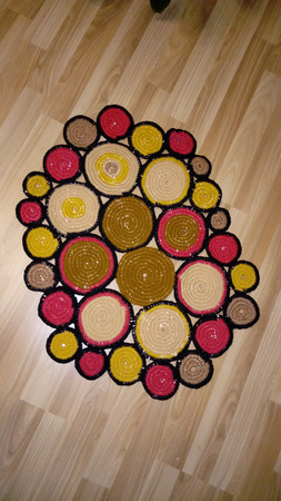 Коврик из круглых разноцветных мотивов определенных цветовых оттенков -авторская ручная работа , связан крючком из теплой полушерсти, размер 80х60см, выполню на заказ, цена зависит от размера и пряжи