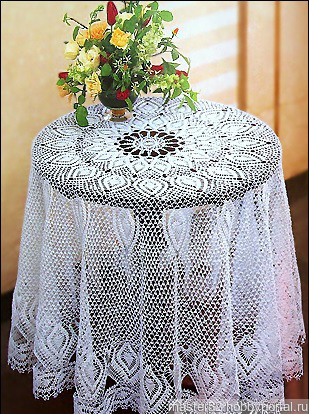 Очень красивая скатерть вязаная крючком. Примерный размер скатерти 148 х 148 см.Скатерть связана из тонких ниточек Нитки х/б№20 катушечные швейные тоненьким крючком. Прослужит долгие годы.Если Вам понравились мои работы - нажмите на кнопку "Добавить в круг" и Вы никогда не потеряете мой магазин