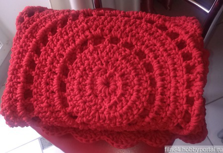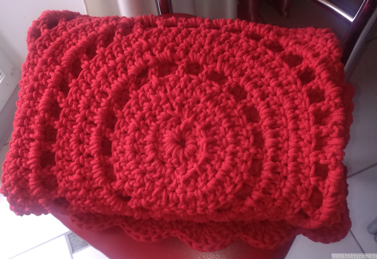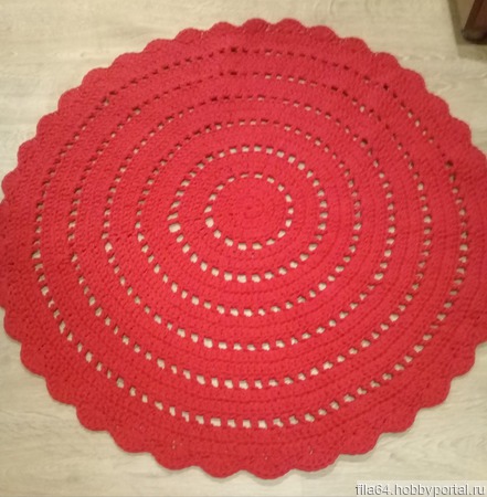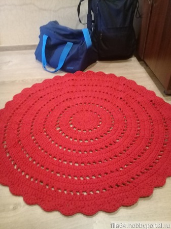ручная работа, ковер крючком, ковер из шнура, круглый ковер, красный коврик