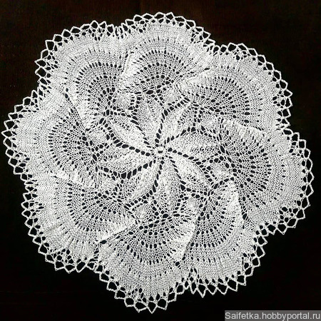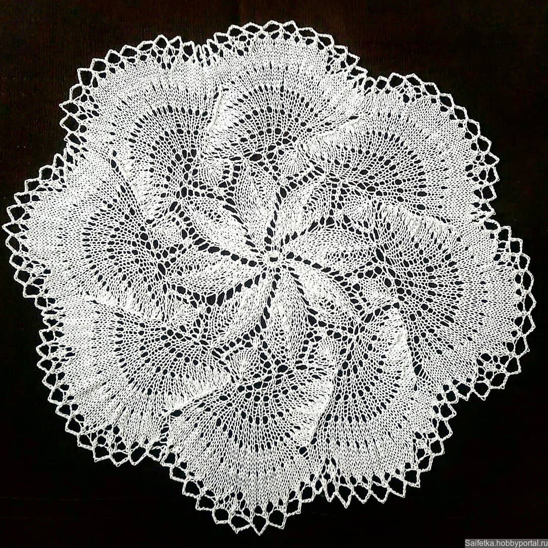 ажурная салфетка, связанная спицами по немецкому журналу (можно собрать комплект салфеток одной серии, разного диаметра)