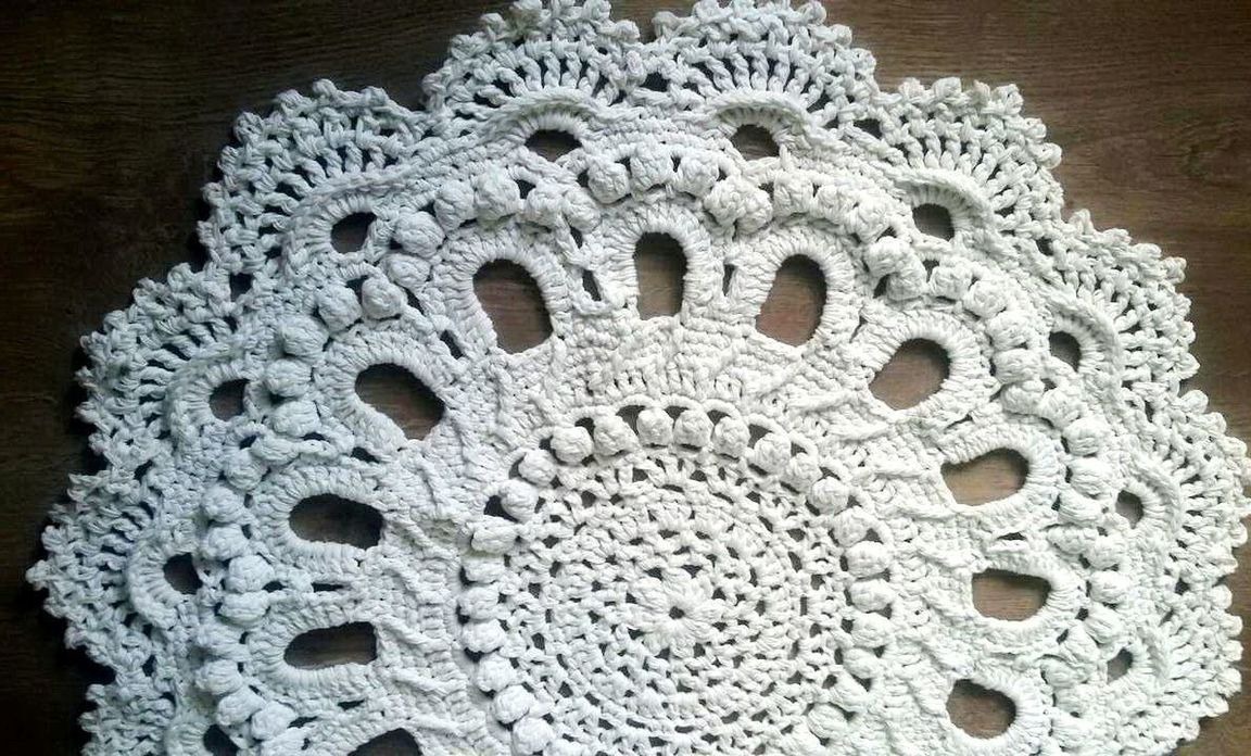 Круглый коврик, связанный крючком, природно впишется в интерьер любой комнаты.
