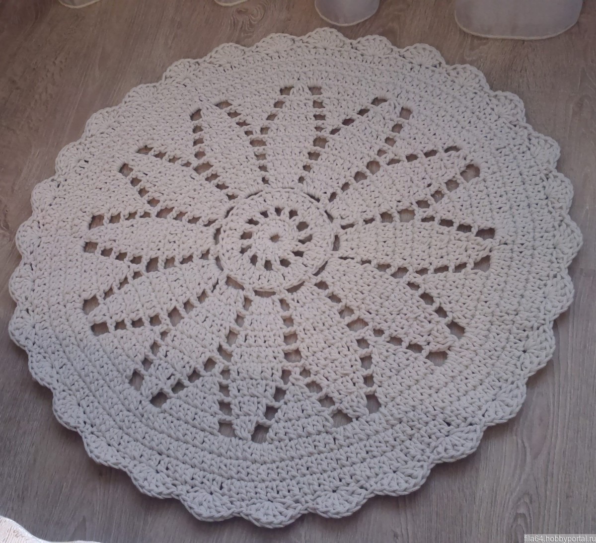 новогодний подарок, круглый ковер, ковер из хлопка, ковер из шнура крючком