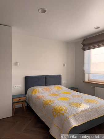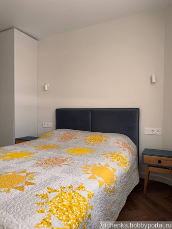 Лоскутное покрывало «Солнечное» сшито из хлопка Китай, Корея, наполнитель danelli slim, основной фон покрывала- светло серый, обратная сторона - хлопок Россия, нежно желтые ромашки. Ажурная стёжка создает особый шарм.Размер 220х 220