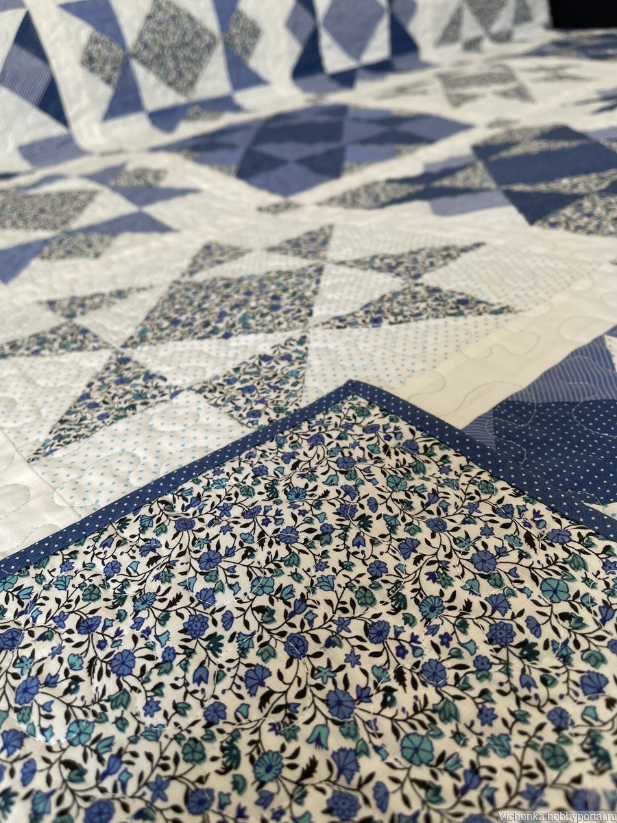 Лоскутное покрывало «Васильковое» экологичное, тактильно приятное, сшито из 100%хлопка Китай, Корея, наполнитель слимтекс. Обратная сторона покрывала- хлопок с васильками. Отличный размер 220х230, всё покрывало заполнено ажурной, изящной стёжкой.