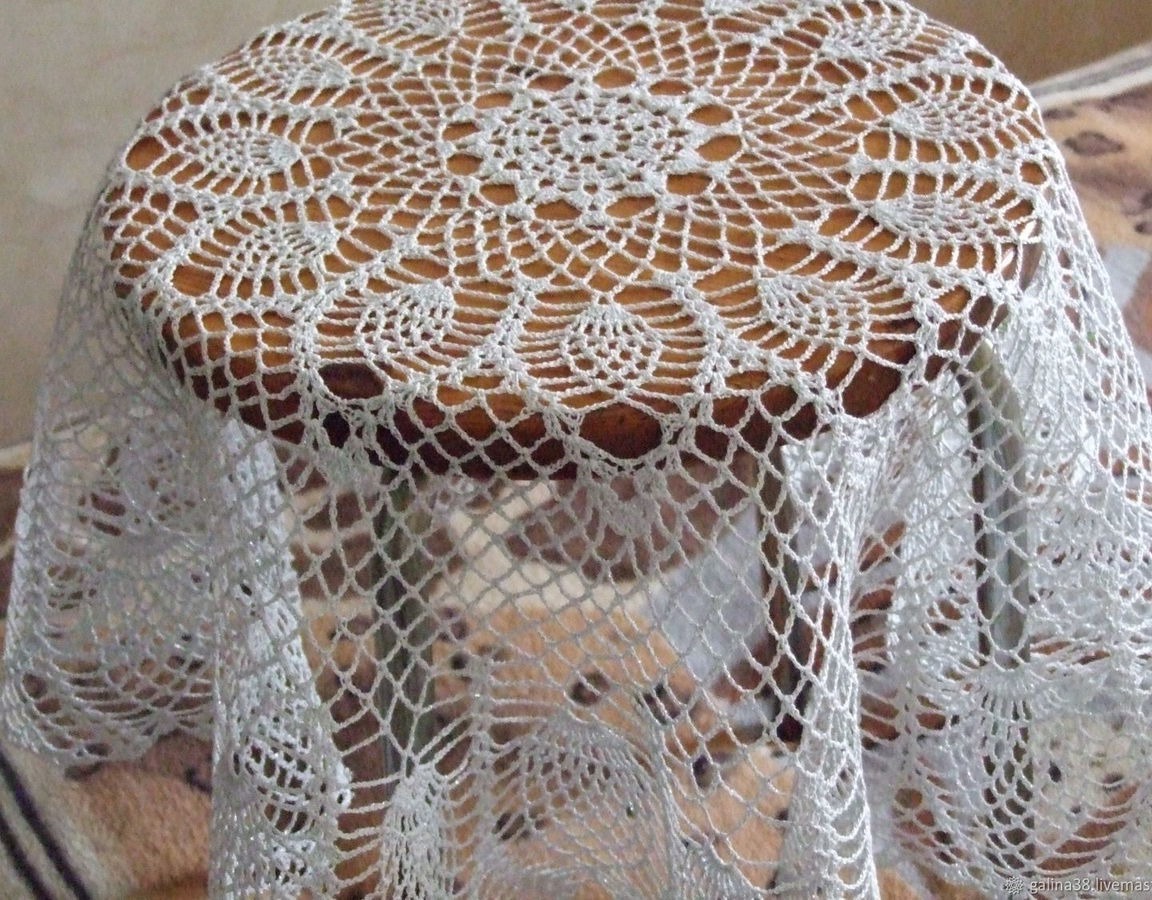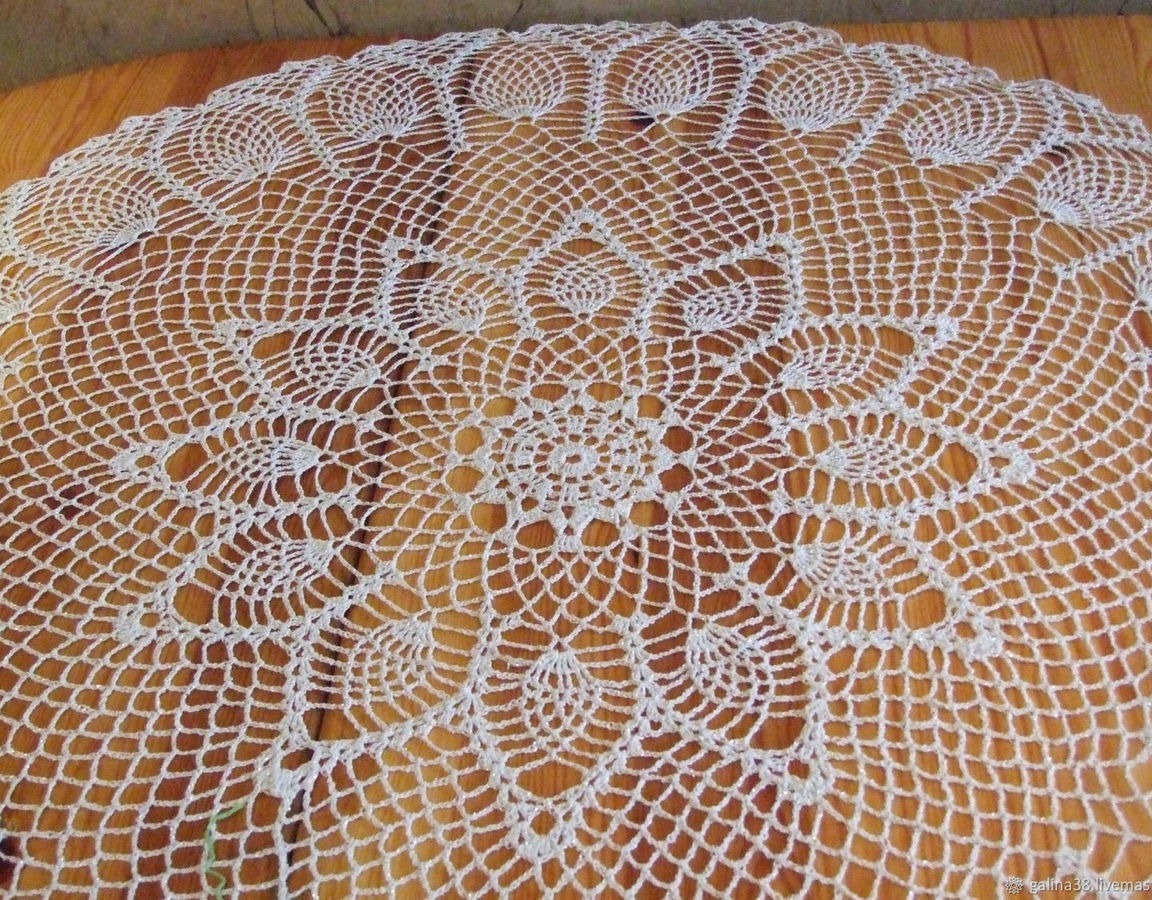 Скатерть связана из ниток "Снежинка сверкающая" с люрексом. К сожалению, фото не передает блеск скатерти от наличия люрекса. Очень красивая работа. Прекрасный подарок или для уюта в своем доме. Работа готова к продаже. Для покупки положите товар в корзину.