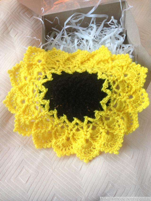 подсолнух, подставка под горячее, подставка под чашку, ажурная салфетка