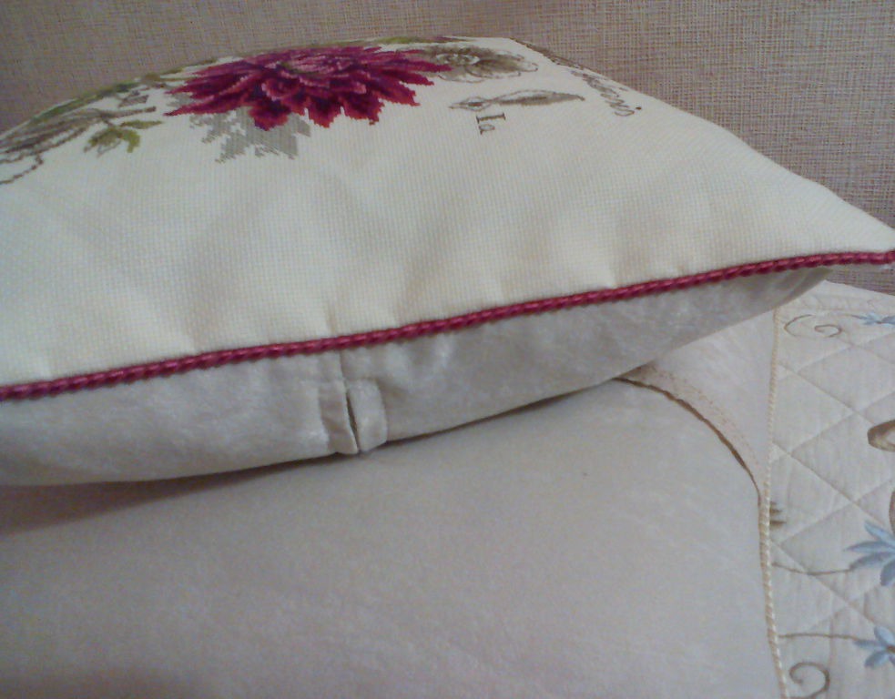 Наволочка на диванную подушку вышита вручную техникой крест, полукрест нитками мулине на канве 16 кн